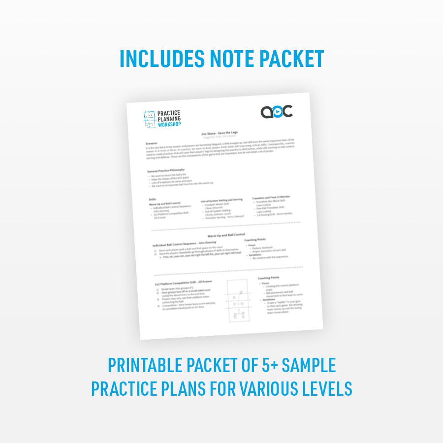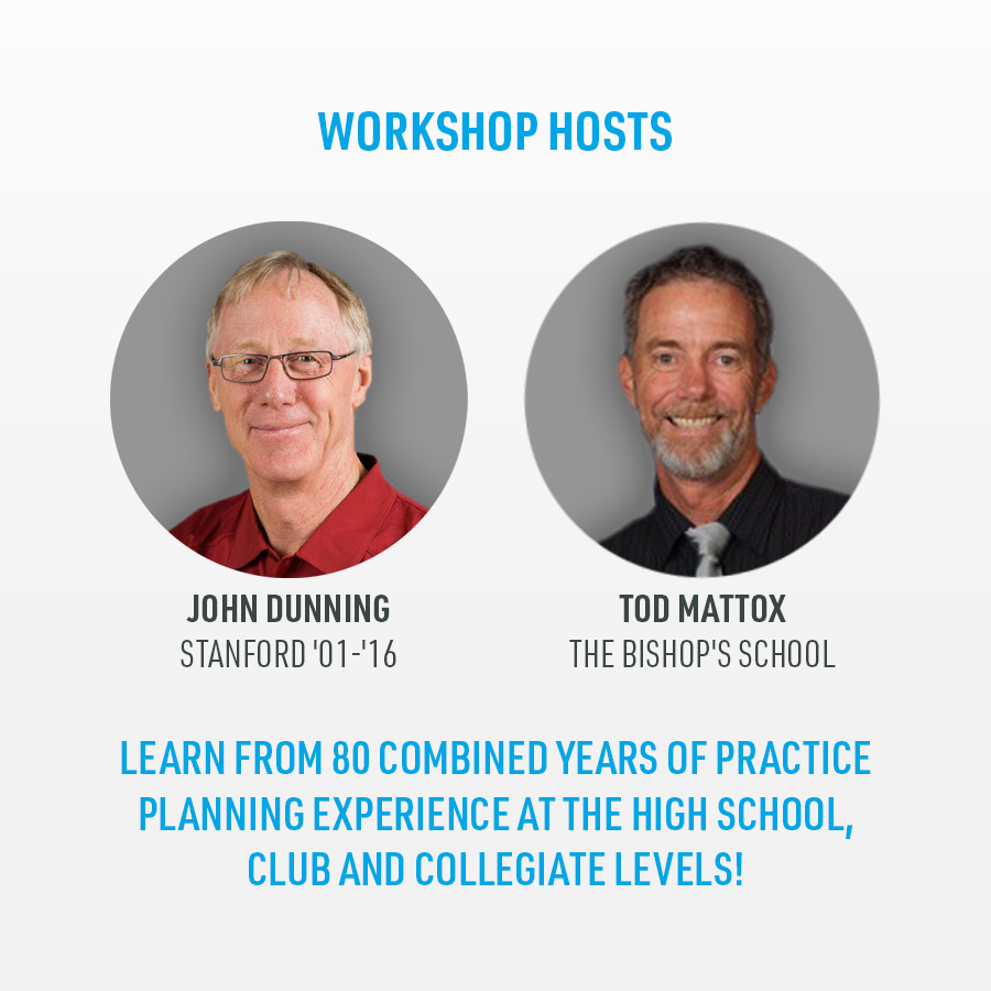 With a combined 80 years of practice planning experience at the high school, club and college levels, John and Tod are ready to explore the ins and outs of practice planning with you and teach you some of their time-tested strategies for building great training sessions.