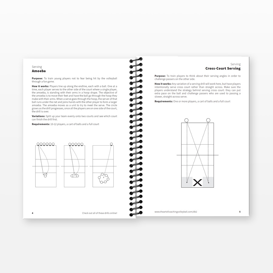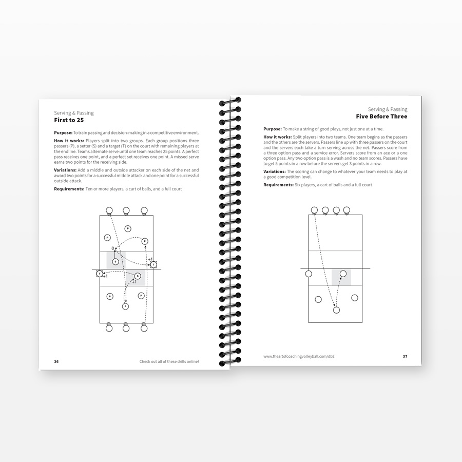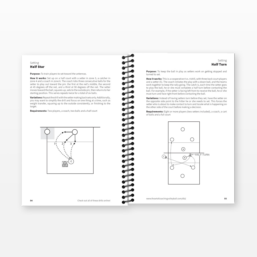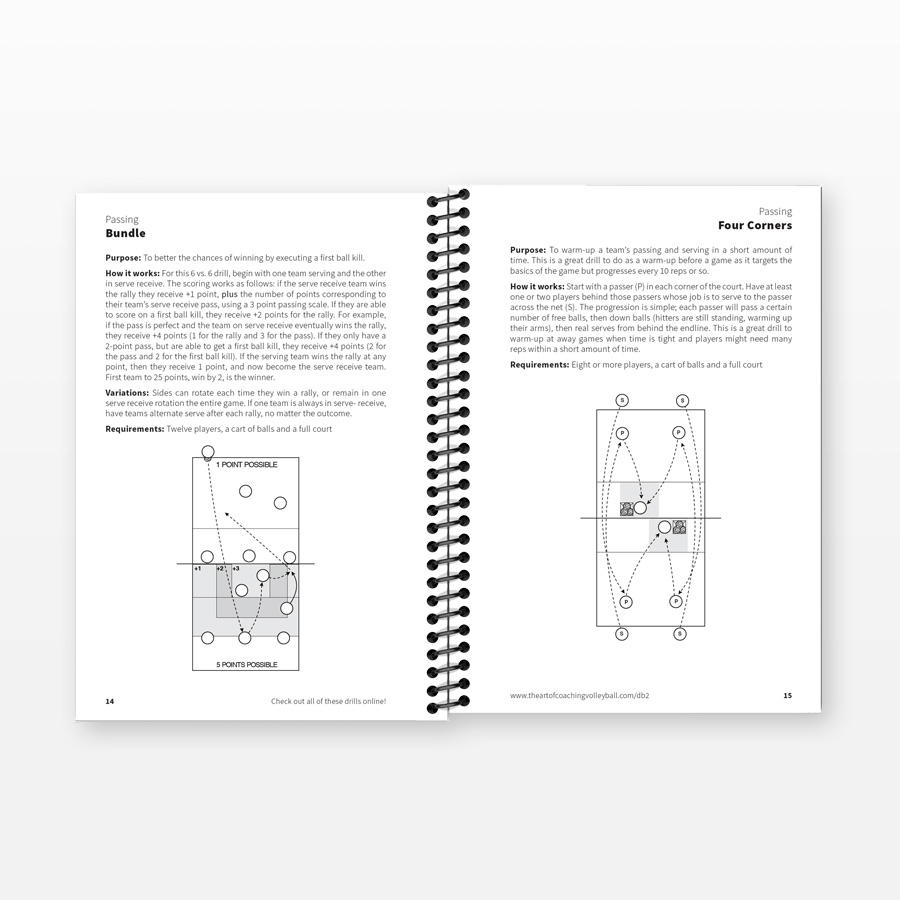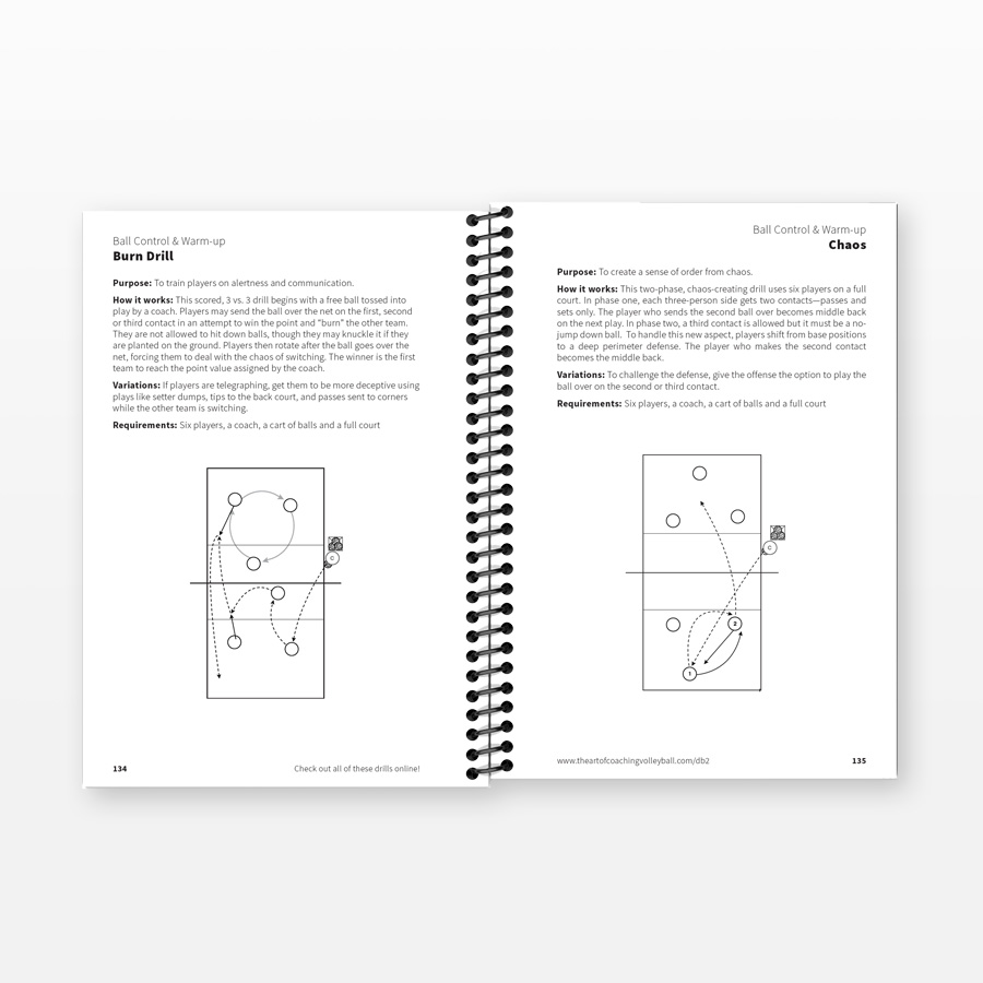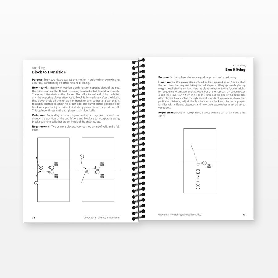 The Volleyball Drill Book, Collection 2 includes over 180 volleyball drills (all different from the original drill book) for coaches and players of all levels. The drills can be used to develop and improve skill technique and team performance in a variety of game situations. Most drills include an easy-to-read diagram and step-by-step instructions on how to run the drill. This drill book includes: